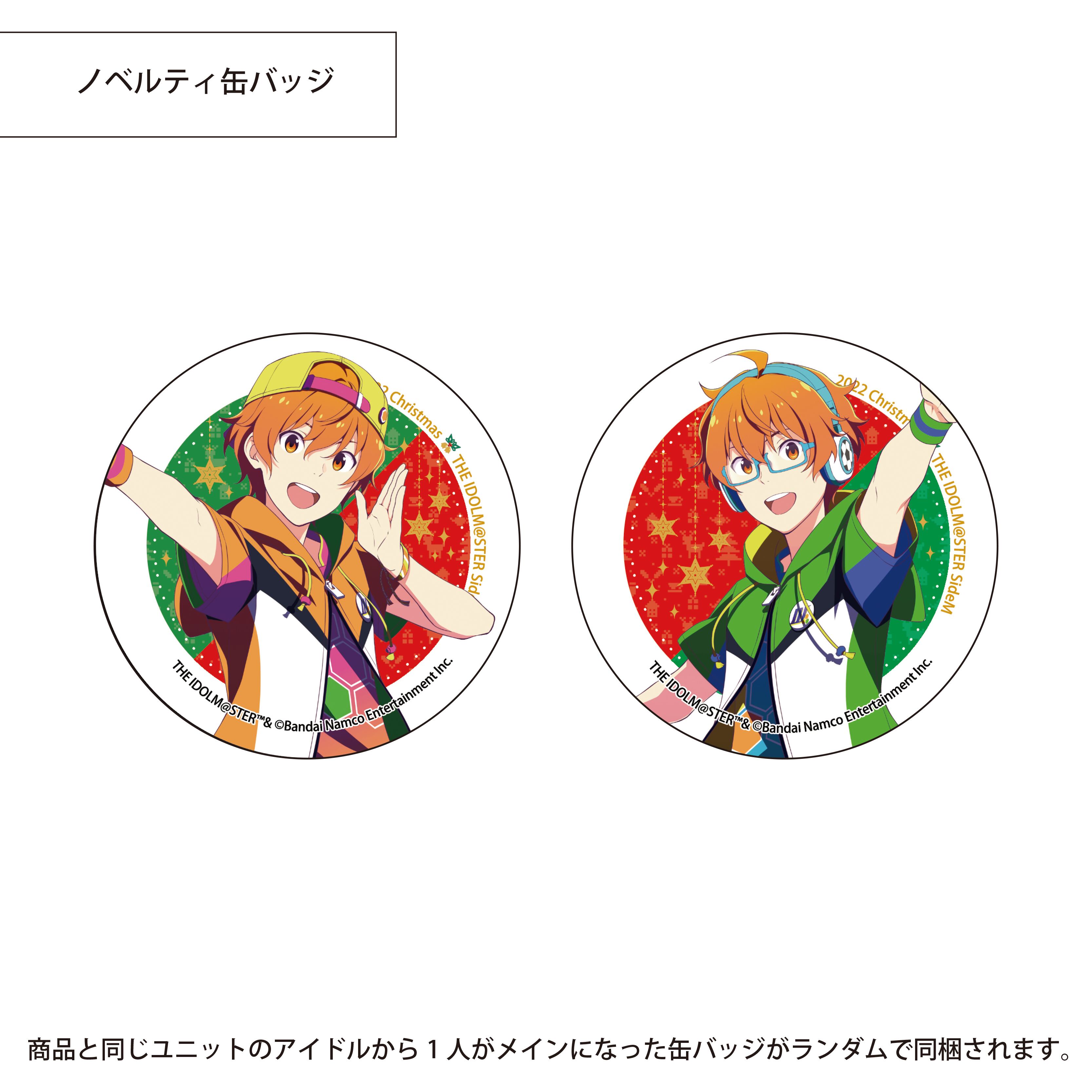 ノベルティには、商品と同じユニットのアイドルから1人がメインになった缶バッジがランダムで同梱されます。