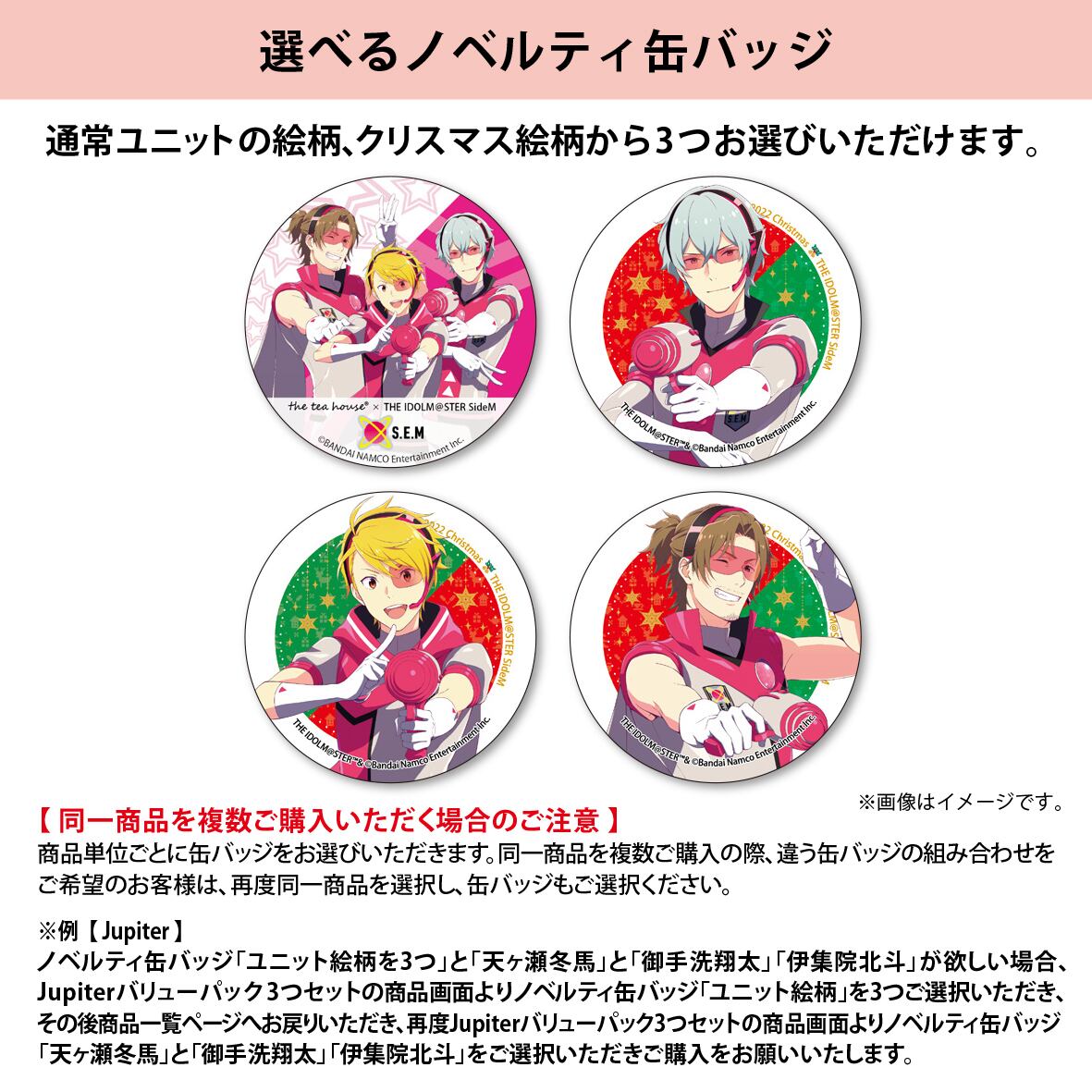 ※ノベルティの缶バッジは通常ユニットの絵柄、クリスマス絵柄から3つお選びいただけます。